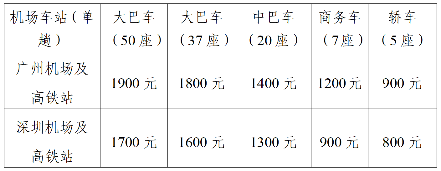 2.交通中轉(zhuǎn)保障。參賽單位原則上從始發(fā)地直達(dá)惠州賽區(qū),不在廣州、深圳賽區(qū)經(jīng)停和中轉(zhuǎn)。確需在廣州、深圳賽區(qū)轉(zhuǎn)換交通工具前往惠州賽區(qū)的,可在抵惠前10天與滑板競(jìng)委會(huì)工作人員聯(lián)系,提供迎送站信息。費(fèi)用標(biāo)準(zhǔn)如下: